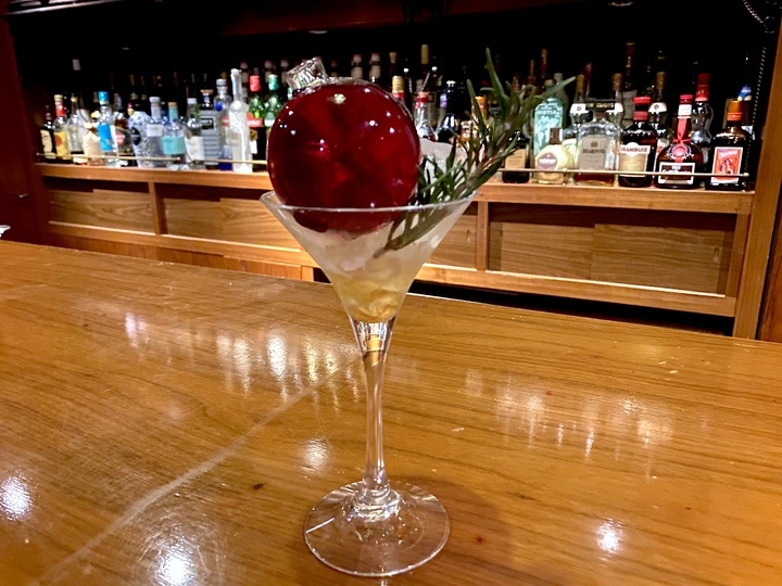 お洒落なクリスマスオーナメントをモチーフにしたカクテル。